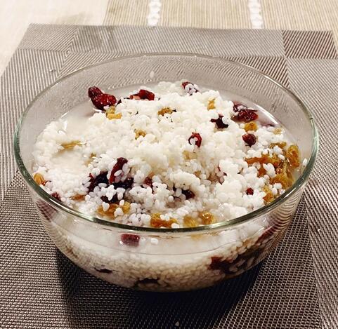 2、葡萄干、蔓越莓加入糯米中,喜歡就多加些,不喜歡就少加些。也可以加些泡好的紅豆之類,自己喜歡就好。
