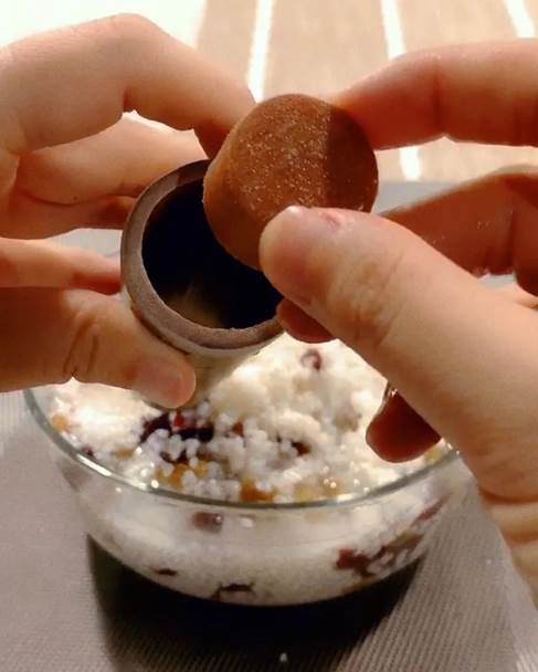 5、把木塞塞緊。盡量壓緊一些,防止煮的時候糯米膨脹頂開木塞爆出來。