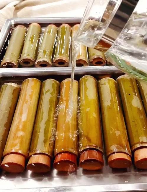 在很多農村地區,祖祖輩輩都會用特制的草木灰當成食物的添加劑,味道獨特還有一股韌勁和清香味道,熬煮出來的粽子質量上乘,外形晶瑩透亮,口感軟糯,不用加什么調料也能特別好吃。然而把竹筒當容器煮出來的粽子有一股竹子的清香,加上糯米的香氣,味道極其獨特。五月份新竹剛長成不久,水分多,熬煮出來的糯米特別香。